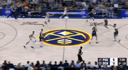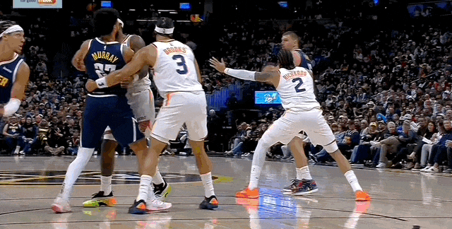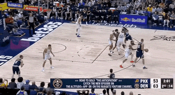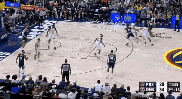 掘金主場(chǎng)迎戰(zhàn)太陽(yáng),比賽剛推進(jìn)沒多久