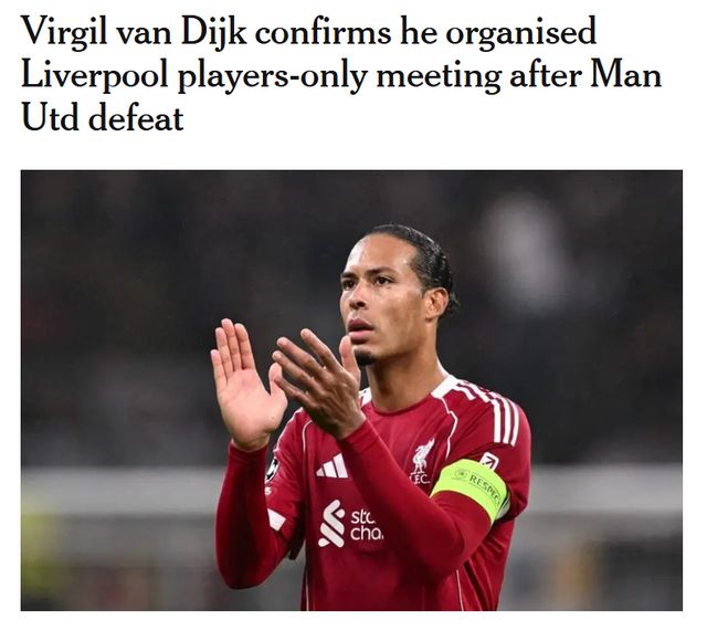 上周日的英超,利物浦主場(chǎng)1-2輸給曼聯(lián),4連敗的陰影,籠罩在所有人的頭上。本周一,34歲的范戴克牽頭,在利物浦訓(xùn)練基地召開會(huì)議。