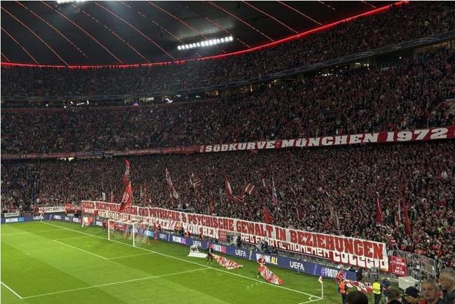 在拜仁對陣布魯日的比賽開賽前不久,安聯(lián)球場的球迷們舉起了一條橫幅,上面寫著“反對權力濫用以及在關系中的身體和心理暴力” 。