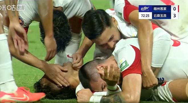 第81分鐘,云南打反擊,奧斯卡在可傳可射的情況下,傳給位置更好的恩里克,后者后點輕松抽射空門得手,玉昆4-0!梅州被打花了!