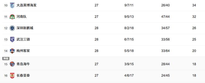 隨著三鎮(zhèn)12,梅州14,中超積分:1隊保級成功,3隊成降級熱門