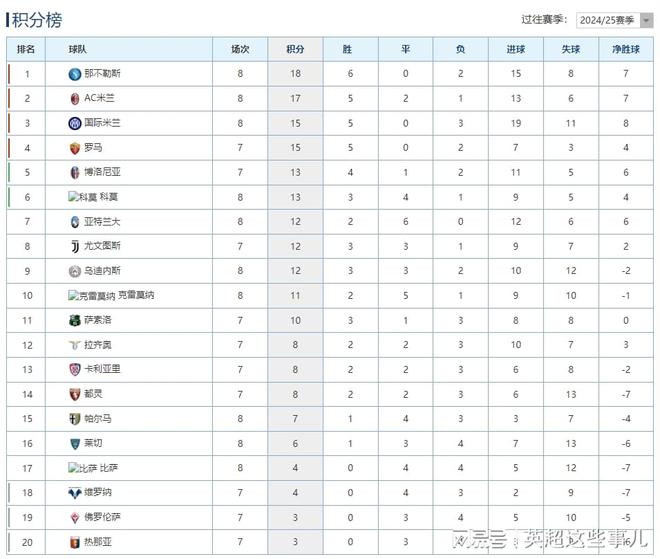 意甲最新積分榜:那不勒斯力克國米登頂,亞特蘭大保住不敗金身!