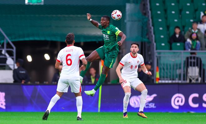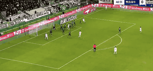 第41分鐘,青島海牛獲得角球,奧古斯托的勁射擊中邊網(wǎng)。