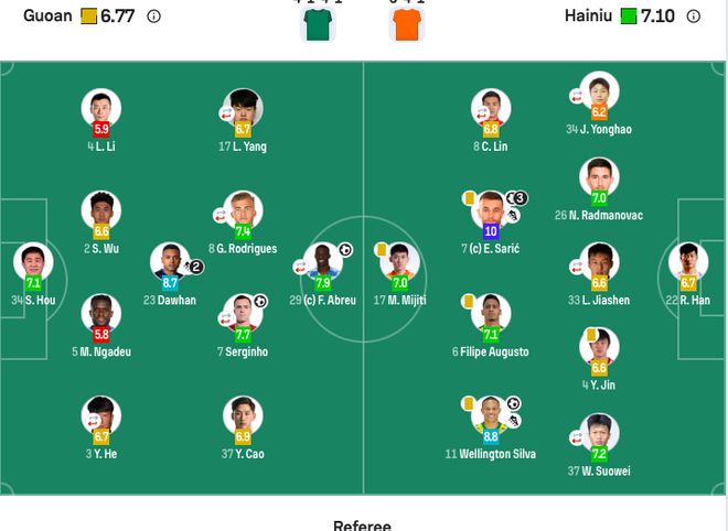 中場:7-塞爾吉尼奧(70’21-張?jiān)矗?-古加(F)(85’10-張稀哲)、23-達(dá)萬(F)、17-楊立瑜(61’11-林良銘)、37-曹永競;